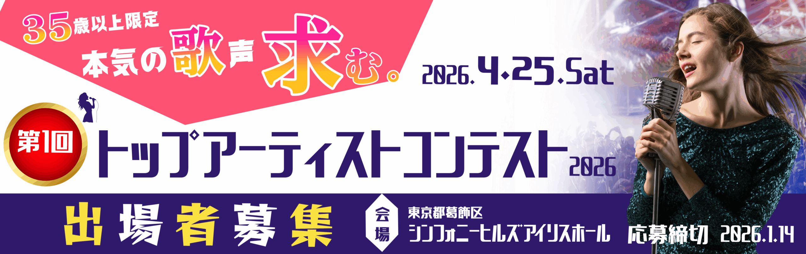 トップアーティストコンテストは、35歳以上の大人がもう一度ステージに立つための、新しいチャンスです。